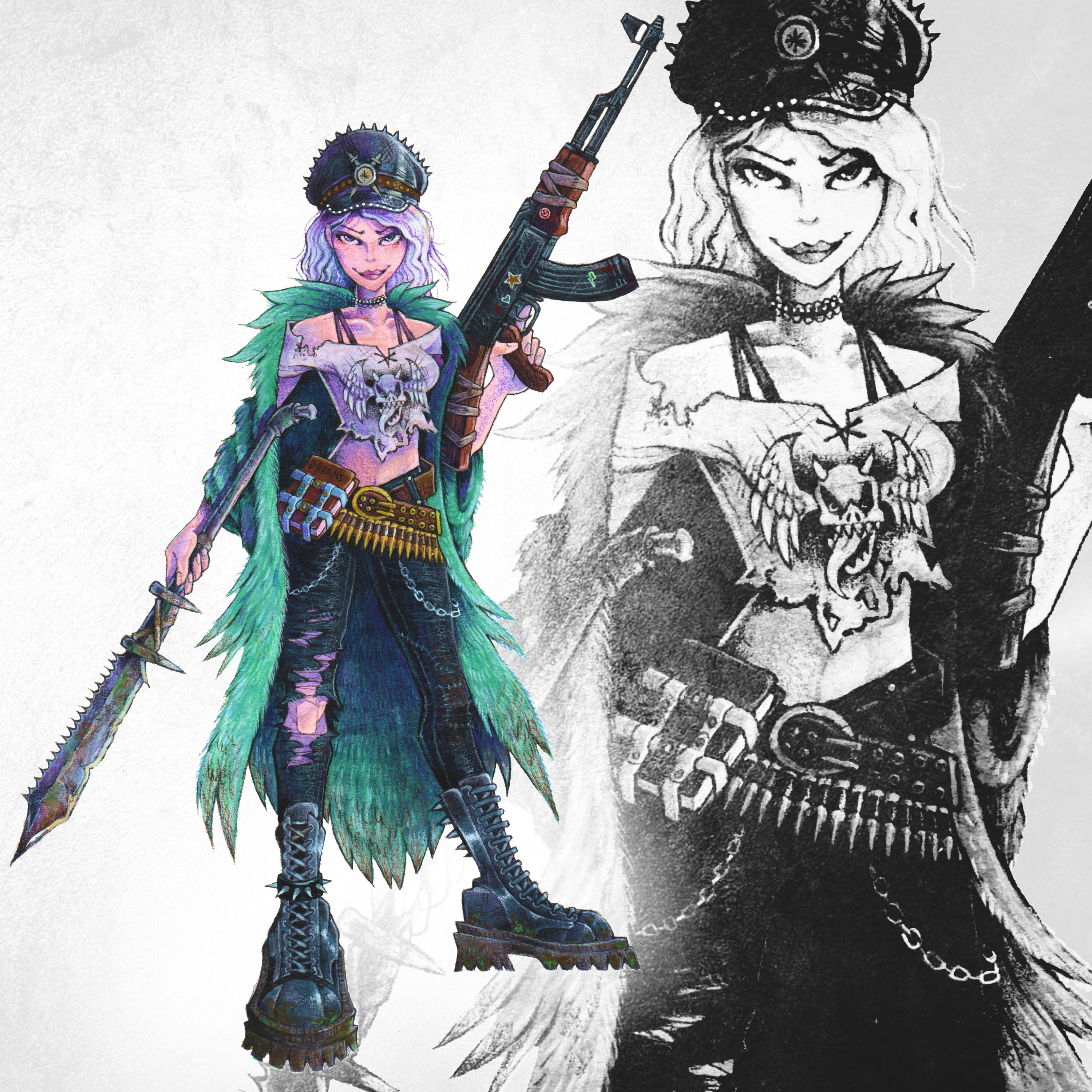 Since 2024, I have had the honor of working with popular Atlanta-based rock band Vickis Dream to create uniquely morbid illustrations of their characters.You see, not only is Vickis Dream a band that performs all across Atlanta, but it is also a story that follows Vicki, who after waking up from a deep slumber, finds herself in the post-apocalyptic remains of Earth and human society.It is my job to bring the heros and villians of Vicki's story to life through the art of illustration!